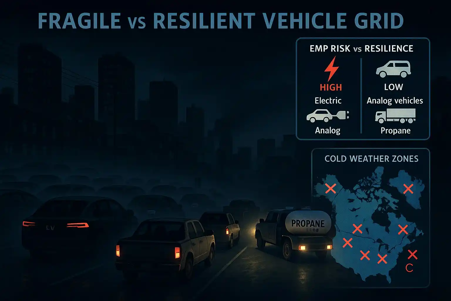 EVs lack mechanical overrides or EMP protection