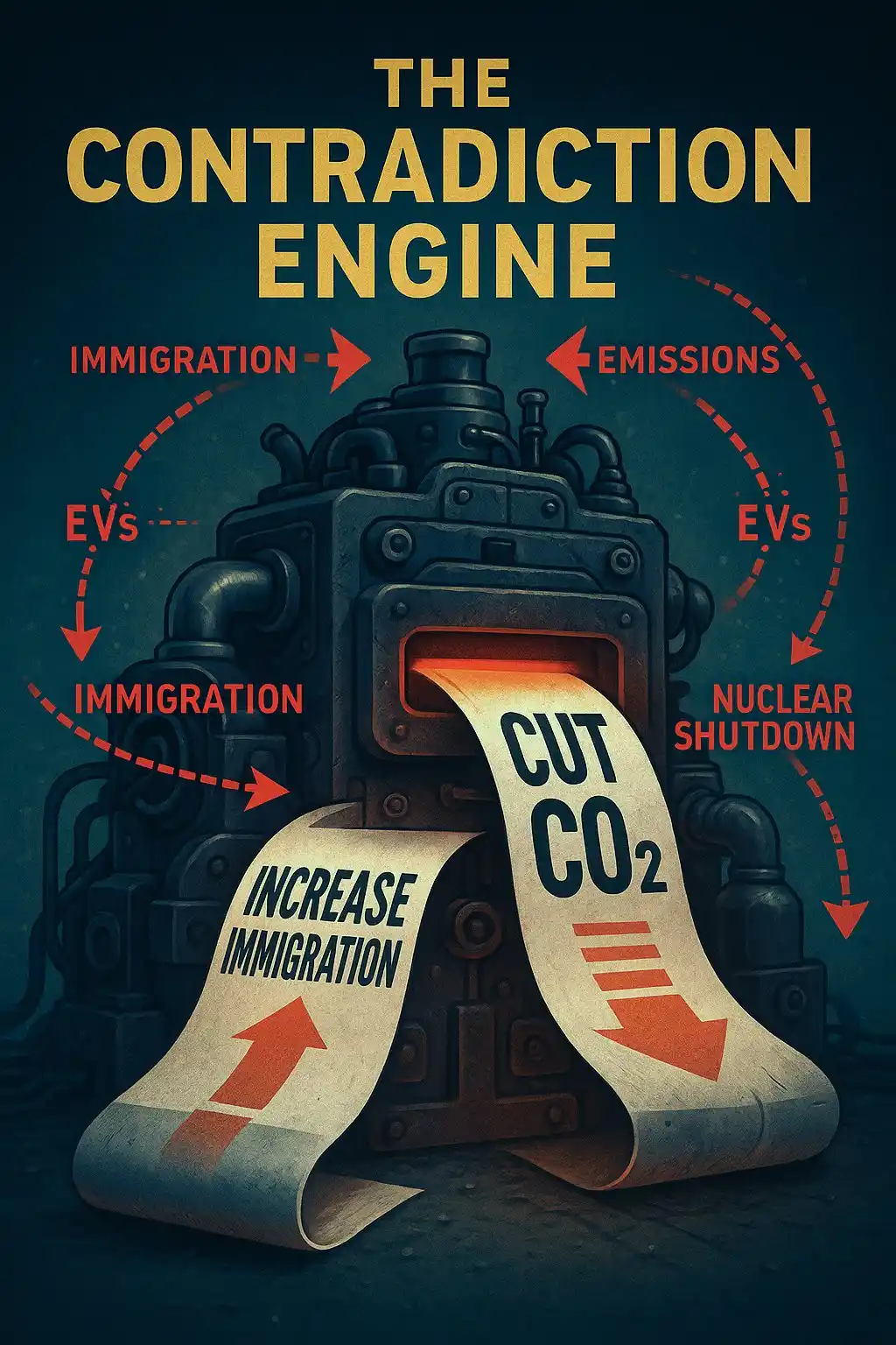 The policy contradictions are staggering. While mandating grid-dependent EVs, the federal government simultaneously phases out nuclear baseload energy, spikes immigration (dramatically increasing national COโ output), and blocks investment in robust analog systems. This reveals not incompetence โ but alignment with a deeper agenda. One in which behavioral access to mobility is governed through smart grid telemetry, digital ID enforcement, carbon quotas, and AGI-intermediated permissions.
