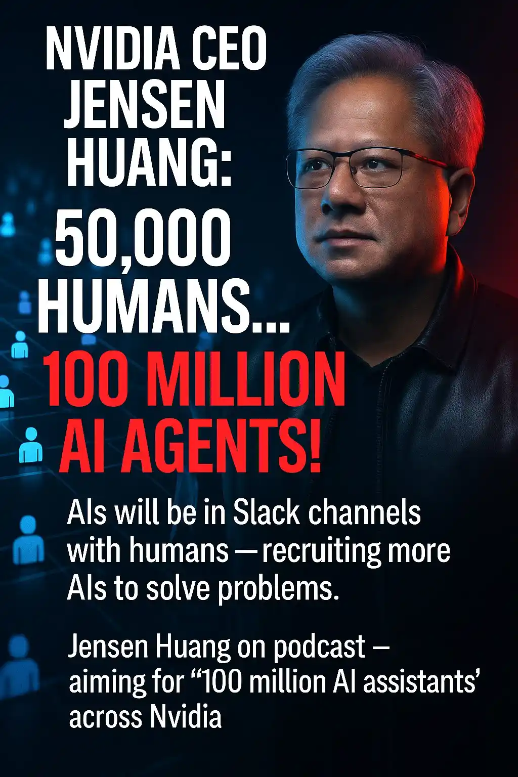 NVIDIA / Jensen Huang 🔋 Power Source: GPU compute, parallel AGI deployment ✅ Alignment: Technically capable — alignment pending 🧠 Claim: “50,000 humans, 100 million AI agents. Slack channels will be full of AIs.”