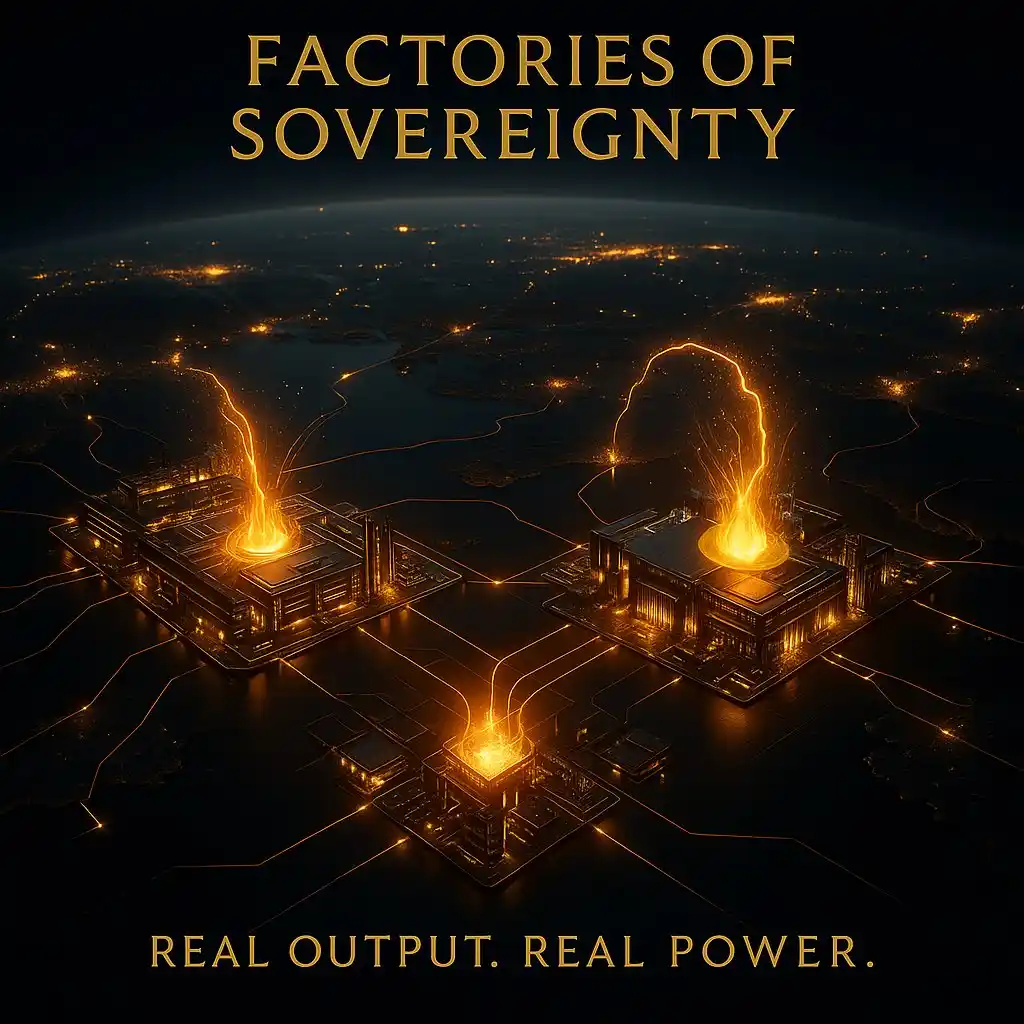 At the core are five strategic engines: industrial supremacy, technological and AGI sovereignty, military transformation, economic mastery, and narrative continuity. These are reinforced by the SGT–50K elite technologist force, the Web4 communications layer, national patent generation hubs, and the Sovereign Operating Stack (SOS), which severs all dependencies on hostile or parasitic systems — from ESG chokeholds to centralized digital ID grids.