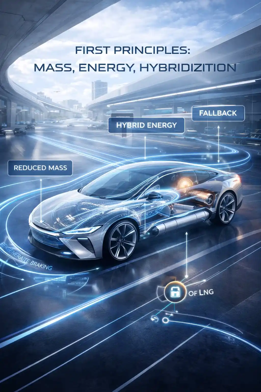 The next principle is that fuel is part of the stack, not the whole stack.[1][2][6] This matters because transport debates often start at the wrong place. They begin with the energy source and then try to infer the vehicle from it. A better approach is the reverse: design the object first, then ask which energy pathways complement that object’s mission. In this case, the vehicle’s gains come first from lower mass, then from hybridization, then from tighter systems discipline and right-sized storage, and only after that from the fuel branch itself. Natural-gas or dual-fuel logic can strengthen the architecture, but it cannot rescue a badly designed object. If the machine remains overweight, overburdened, or poorly packaged, fuel substitution becomes a superficial correction. If the object is already materially improved, then the fuel pathway becomes one more layer in a coherent stack. That ordering keeps the thesis honest. It prevents the report from pretending that a fuel identity can substitute for sound engineering.