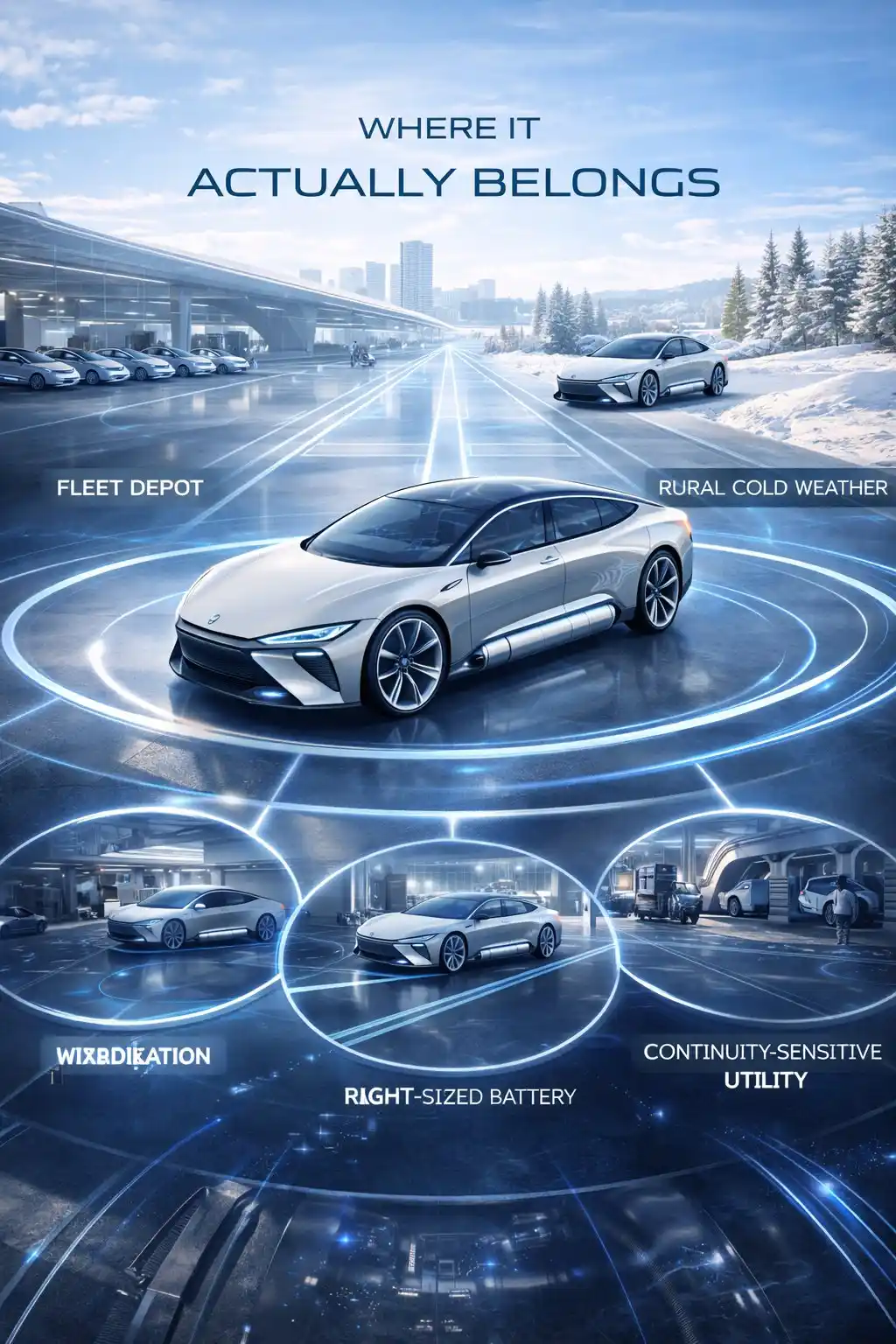 In the stable-grid lane, the best fit is already selective rather than universal. The architecture is strongest in fleet-first roles, because fleets can evaluate vehicles as tools, centralize fueling and maintenance, and decide whether added complexity is justified by measurable uptime or route value.[3][6][10] It also fits work-use and service vehicles, where stop-start duty cycles, route variability, and the cost of lost operability are more important than consumer smoothness. From there the case extends into rural utility, cold-weather regional, and other continuity-sensitive road-vehicle roles where infrastructure cannot be assumed to be dense, elegant, or always available. In those environments, the architecture’s layered design begins to make sense because the mission actually rewards some combination of lower mass, hybrid efficiency, fallback value, and tolerance for harder operating conditions.