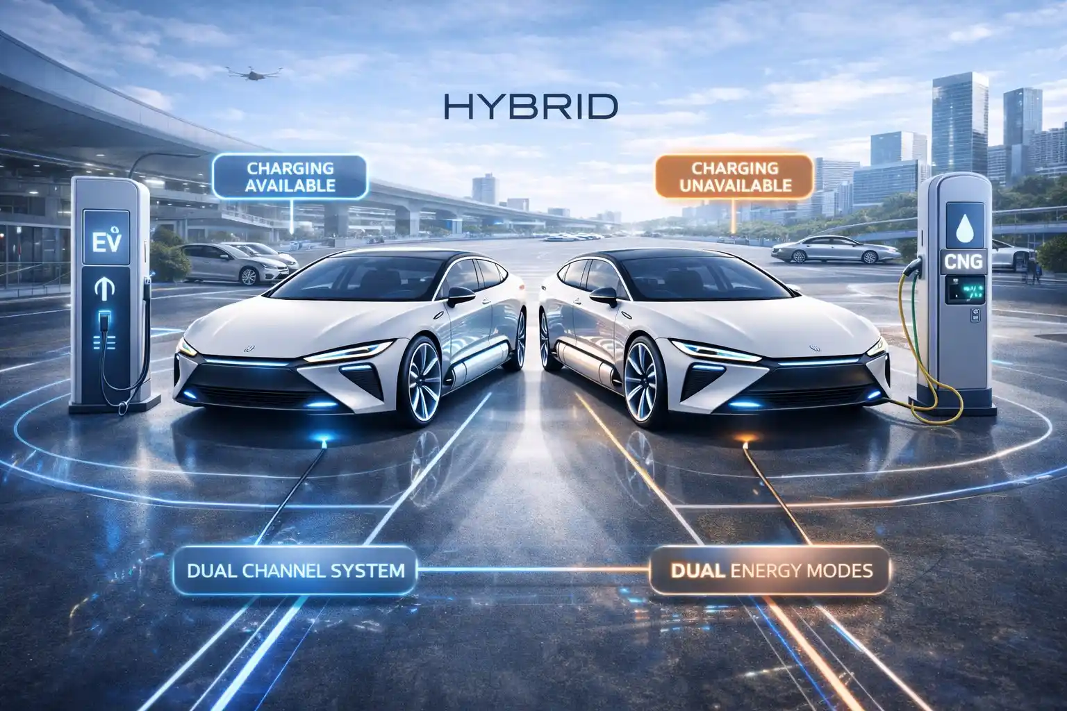 Primary architecture An ultra-light gasoline–CNG parallel hybrid configured as a decentralized fallback road-vehicle architecture.